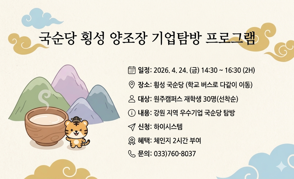 2026학년도 「국순당 횡성 양조장 기업탐방」 프로그램 학생 홍보 요청